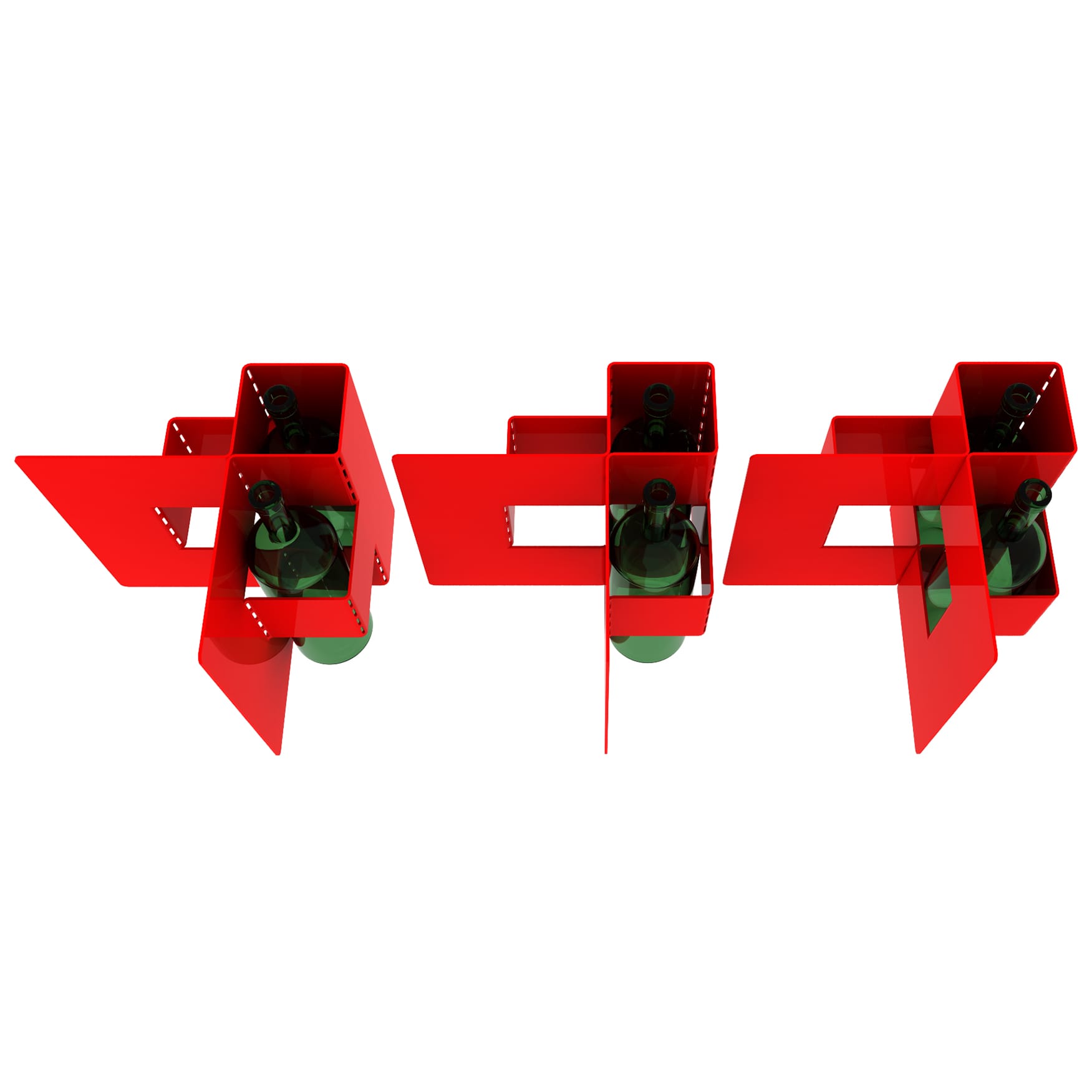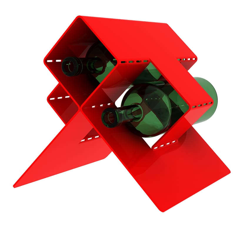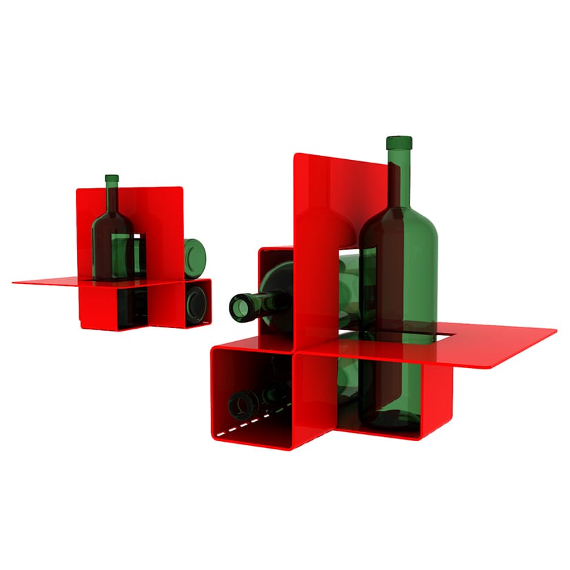 Porta vino escutórico fabricado en acero carbono electropintado de 2 mm de espesor, capacidad para 3 botellas de vino medidas aproximadas de cada compartimento 30 x 10 cms
